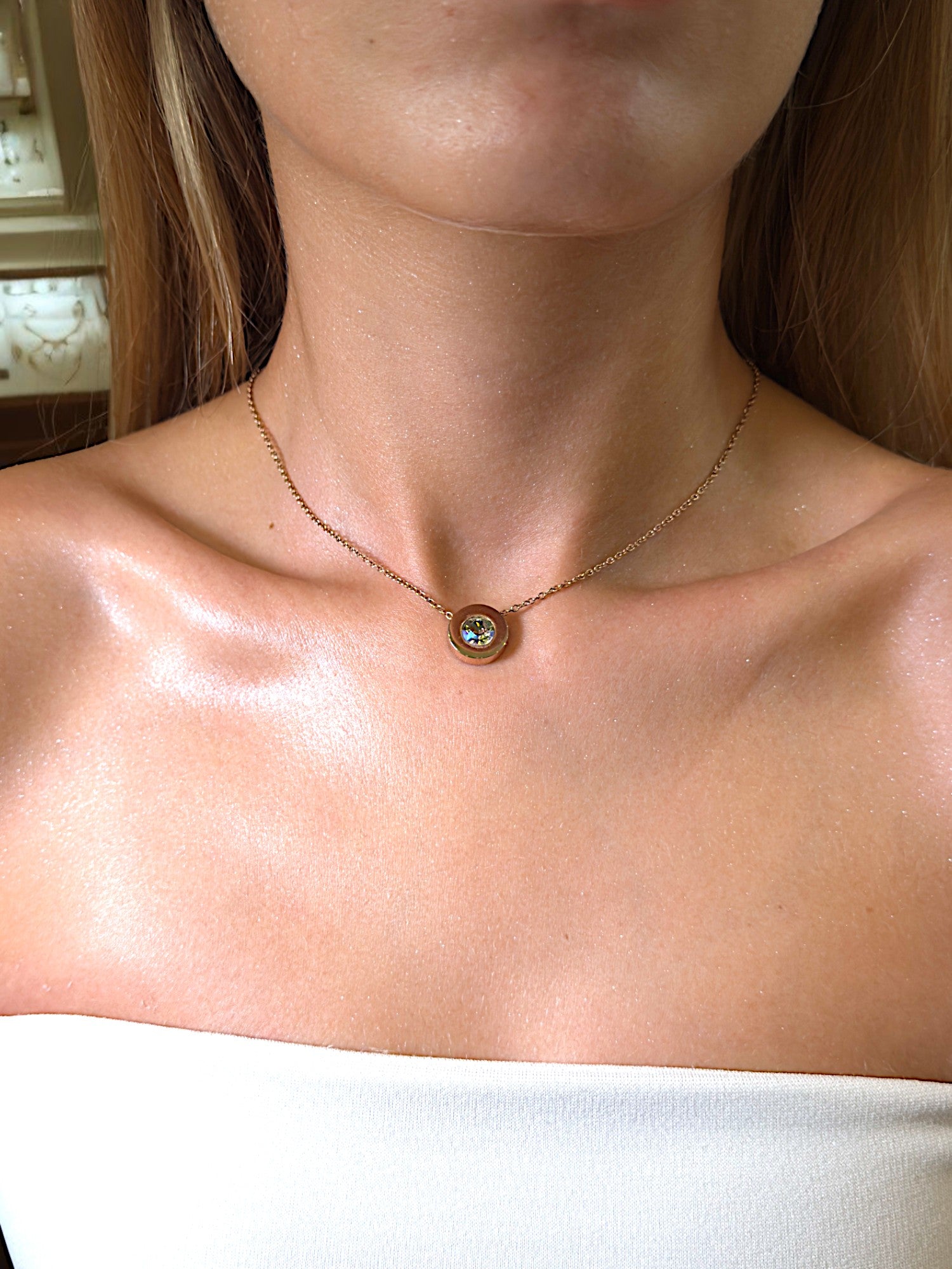 Персонализирано колие Dot с инкрустиран кристал по избор