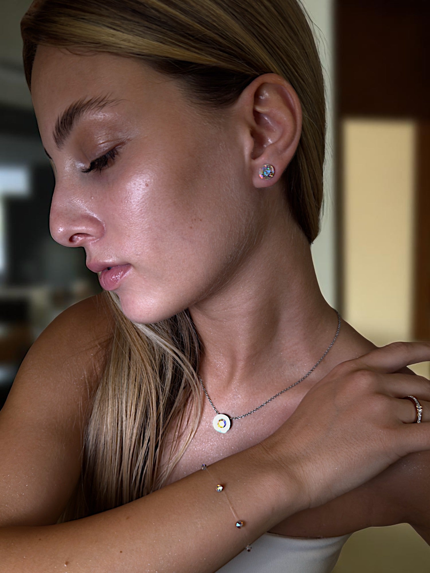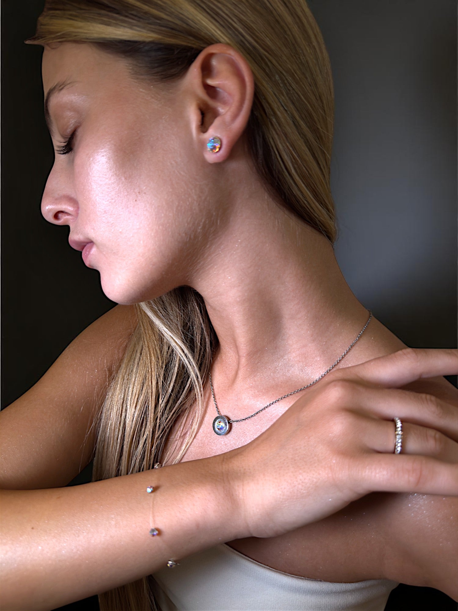 Фино колие с деликатен инкрустиран кристал – създадено, за да носи вашия избор и смисъл. Предлага се в два класически цвята – сребро или розово злато, и завършващ с акцент по избор от нашата селекция от цветни камъни. Лек, изящен силует с личен щрих – идеален за всеки ден или като подарък със значение.