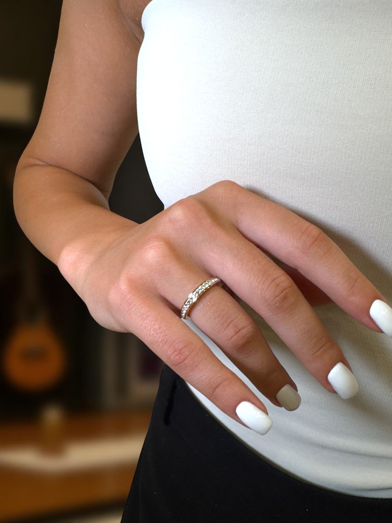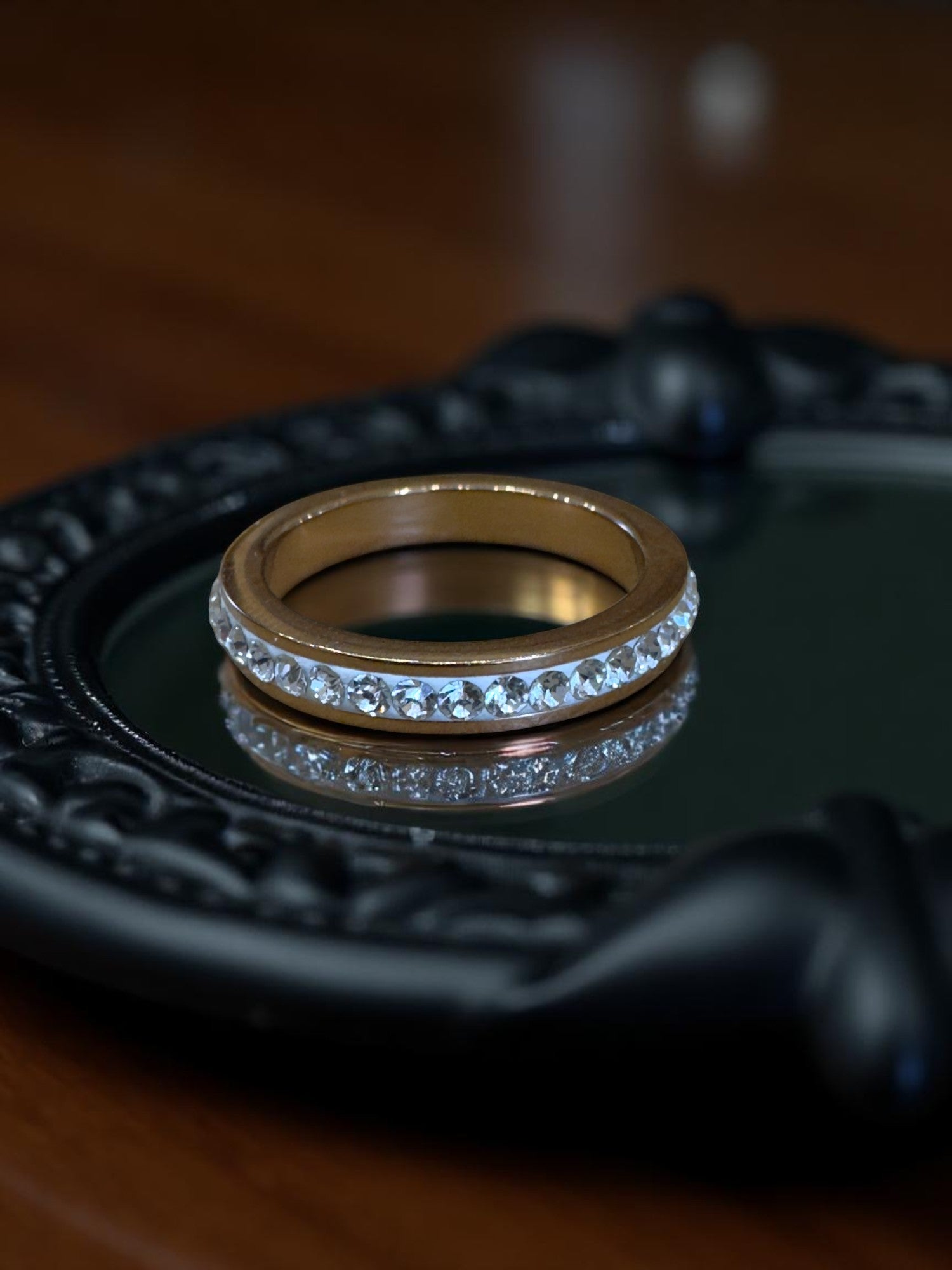 AURA е фин пръстен, изработен ръчно от сребро 925 и покрит с розово злато. Върху него блестят автентични кристали Swarovski, които придават блясък и характер.